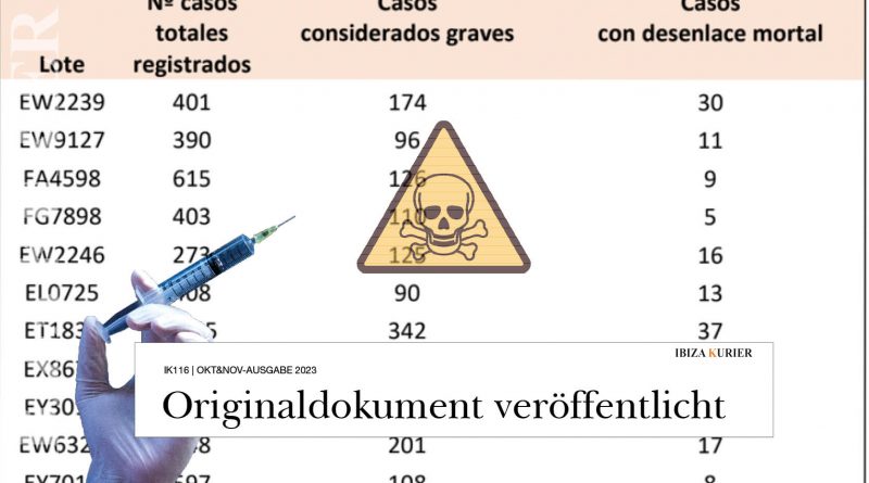 Read More“Liberum” fordert staatliche Arzneimittelbehörde zur Herausgabe der Daten auf. Die spanische Arzneimittelagentur AEMPS (Agencia Española de Medicamentos y Productos Sanitarios), die dafür verantwortlich ist, dass die Kriterien für Qualität, Sicherheit und Wirksamkeit von Arzneimitteln eingehalten werden, hat Angaben über besonders gefährliche Chargen der “Covid-Impfstoffe” gemacht.